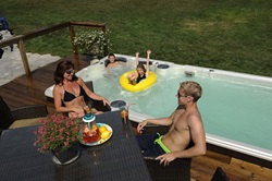 The swim spa design is a kid friendly environment where the side of the spa is always within reach